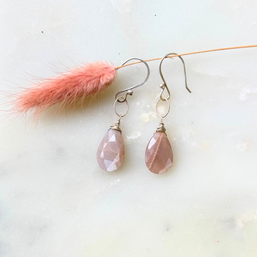 Delight in these charming Chocolate Moonstone earrings! Faceted gemstones shimmer when the light hits them.